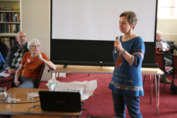 Mary Colwell-Hector, TV Producer addresses our AGM, Some members prepare for worship AGM, Ely 2017